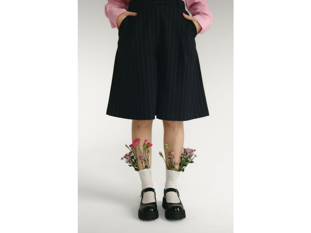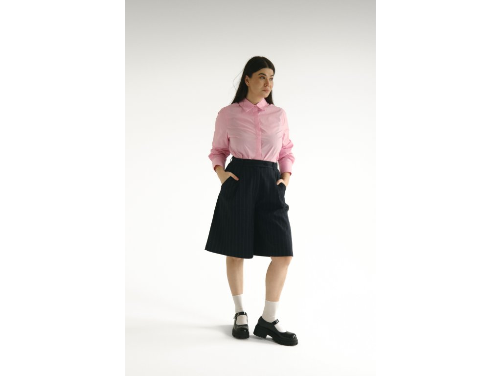 Široké bermudy z príjemnej viskózovej zmesi s jemným prúžkovaným vzorom, ktorý dodáva modelu ľahkosť a nadčasový charakter. Voľnejší strih zabezpečuje komfort a zároveň vytvára elegantnú siluetu.
