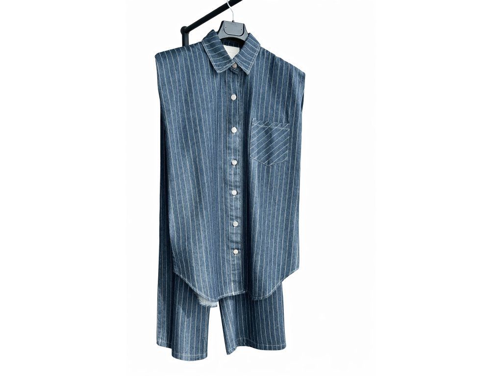 DENIM SET NOHAVICE + KOŠEĽA BEZ RUKÁVOV dark blue
