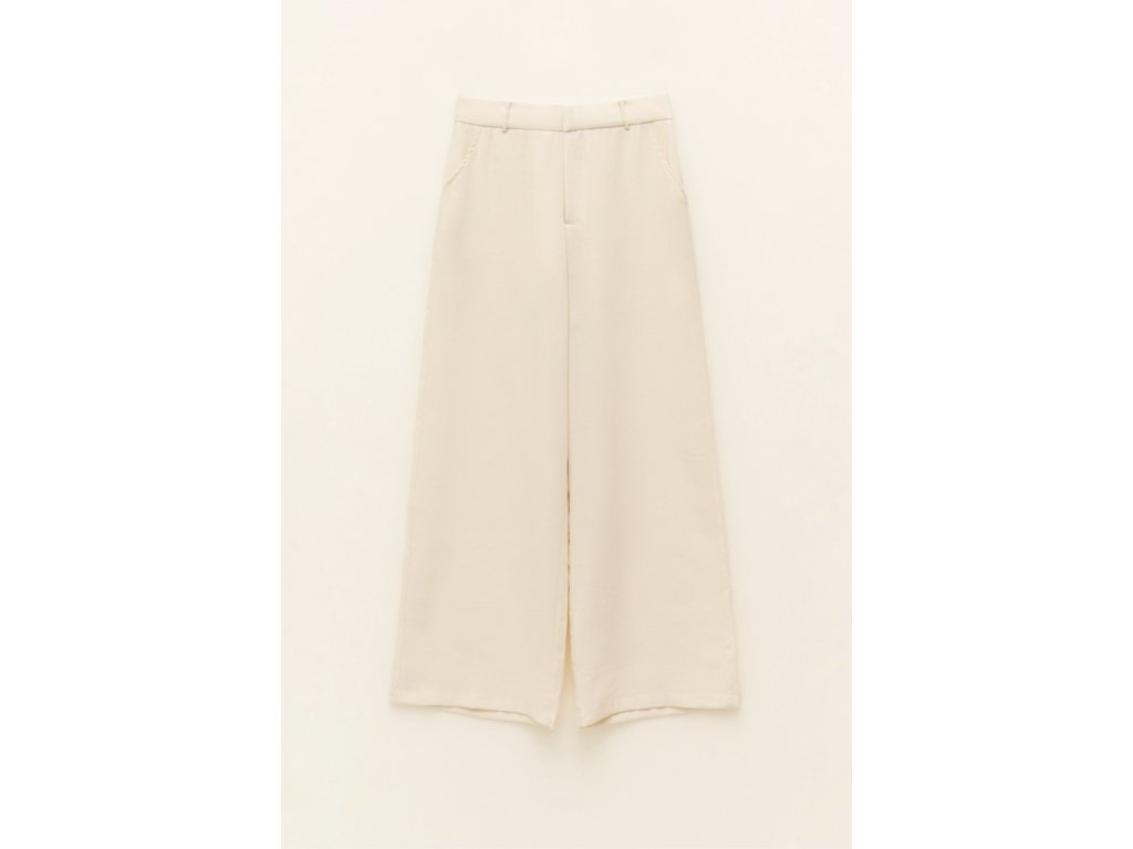 Vyrobené z mäkkého materiálu z ľanovej zmesi, ktorý je príjemný na nosenie a ideálny na teplejšie dni. Majú wide-leg strih so širokými nohavicami, ktoré pôsobia elegantne a zároveň uvoľnene. Praktické vrecká sa nachádzajú vpredu aj vzadu a zapínanie je riešené zipsom a háčikom pre pohodlné a bezpečné nosenie.