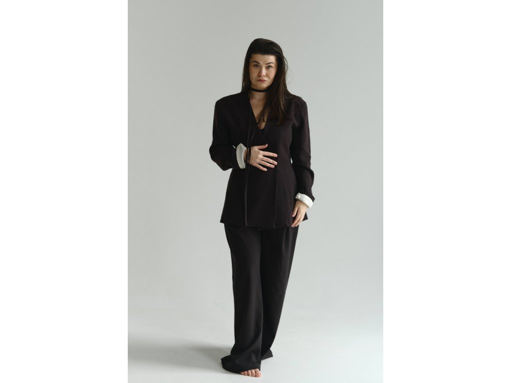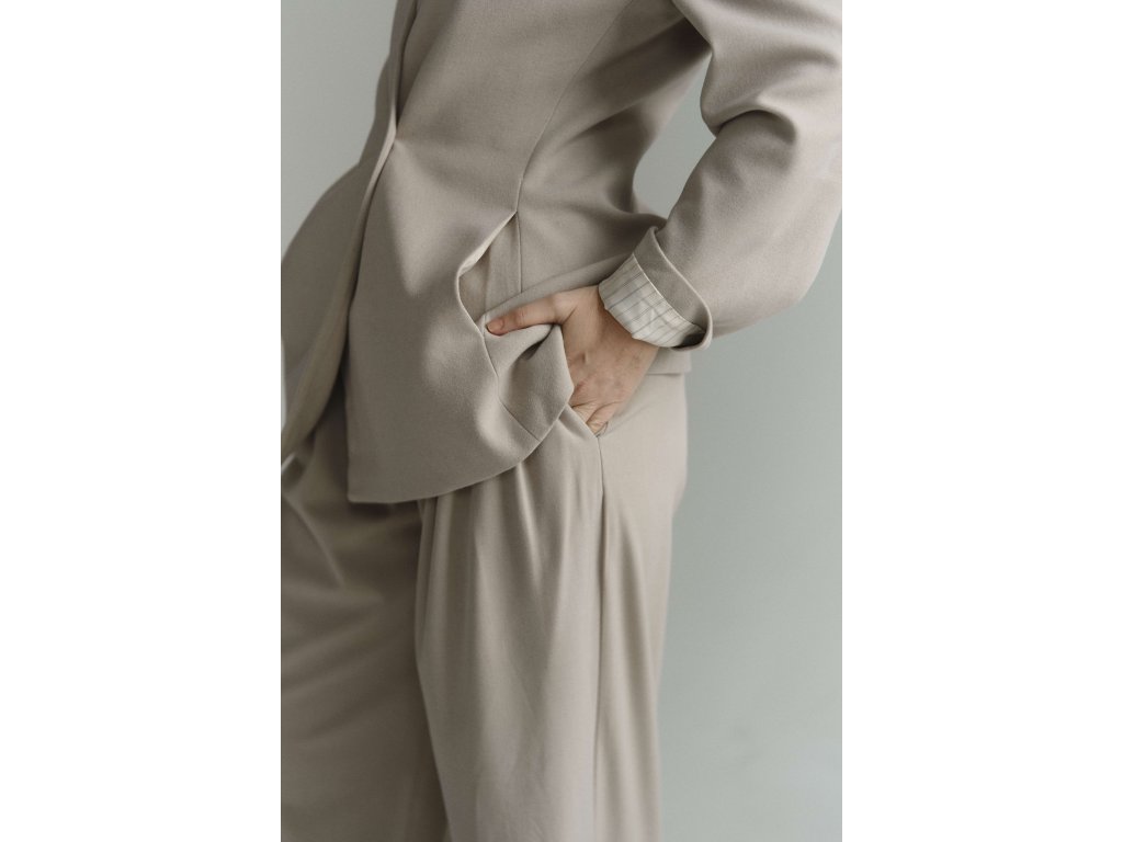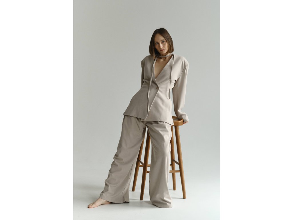 Nadčasový nohavicový komplet navrhnutý s dôrazom na čisté línie, ženskú siluetu a funkčný komfort.