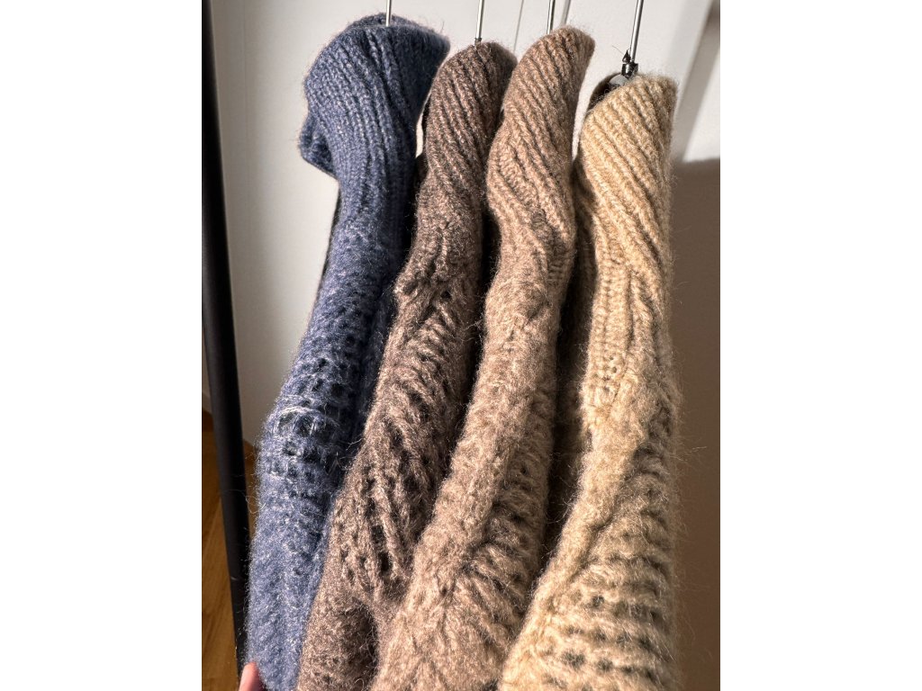 Oversized sveter s dlhším, rovným strihom, ktorý pôsobí uvoľnene a nadčasovo. Jemný, minimalistický roláčik dodáva kúsku čistý a sofistikovaný vzhľad. Zaujímavým dizajnovým prvkom je výrazné prešitie cez ramená, ktoré vytvára modernú siluetu. Spadnuté balónové rukávy podčiarkujú ležérnosť a zároveň dodávajú svetru jemný objem. Ideálny kúsok na pohodlné, no štýlové vrstvenie.