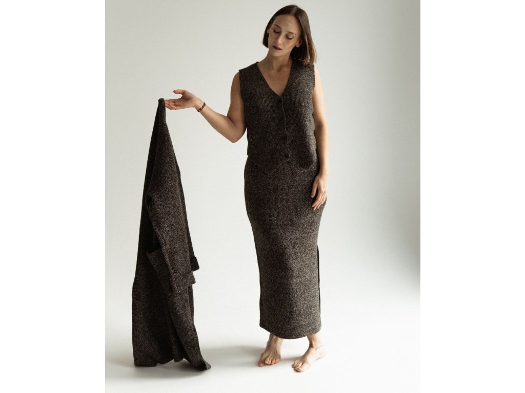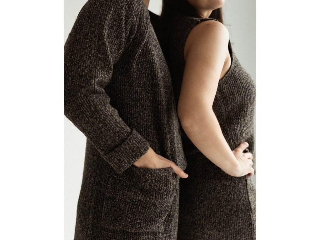 Tento dlhý kardigan s vreckami je navrhnutý tak, aby ťa sprevádzal po celý deň — od pomalého rána až po tiché večery.
