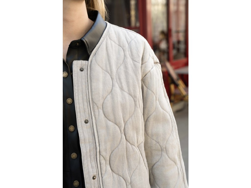 Vyrobená z jemne praného materiálu, ktorý jej dodáva moderný vintage vzhľad. Zapínanie na cvoky zabezpečuje jednoduché nosenie a čistú líniu. Praktické veľké bočné vrecká pridávajú funkčnosť aj ležérny charakter. Ideálny kúsok na vrstvenie počas prechodného obdobia.