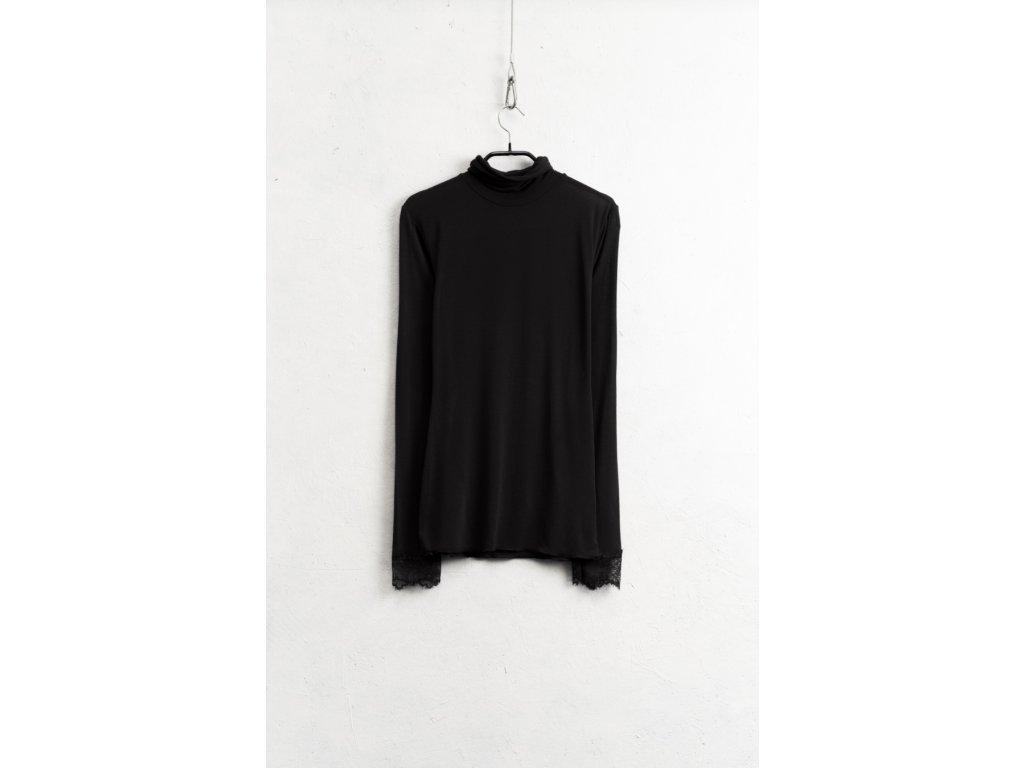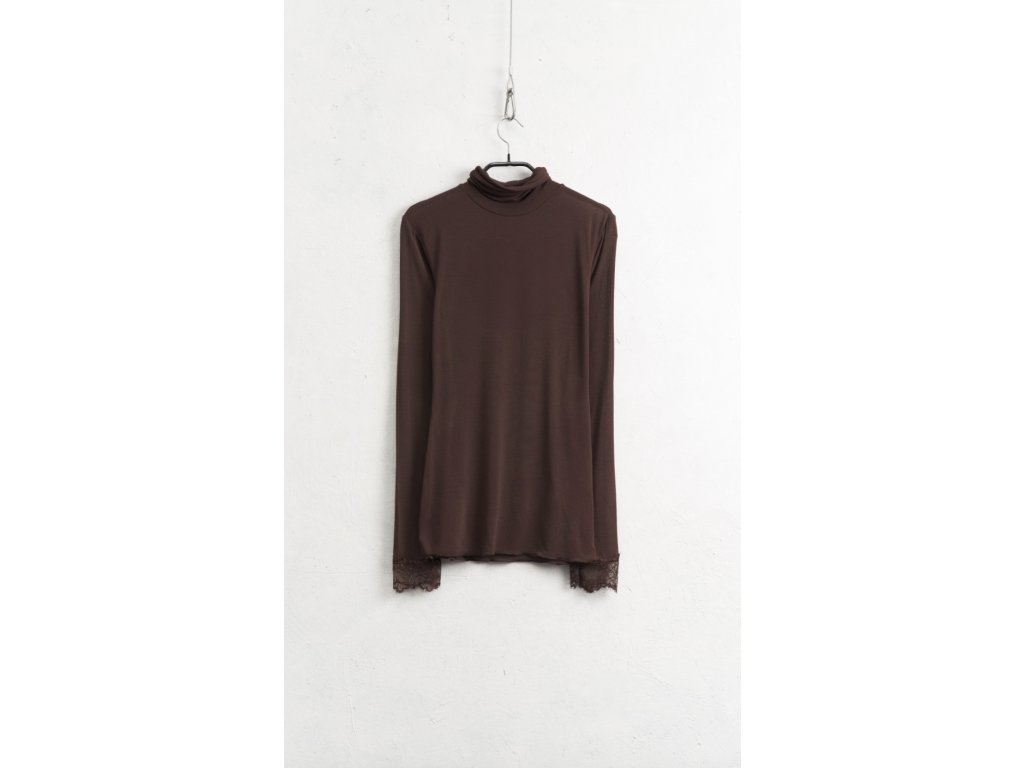 Jemný top s prímesou kašmíru a decentným leskom, ktorý na dotyk pôsobí hebko a luxusne. Má voľnejší, padavejší rolák, ktorý rámuje siluetu s nenútenou eleganciou.