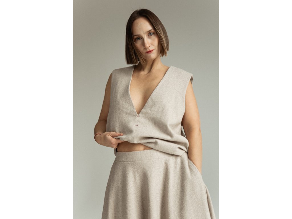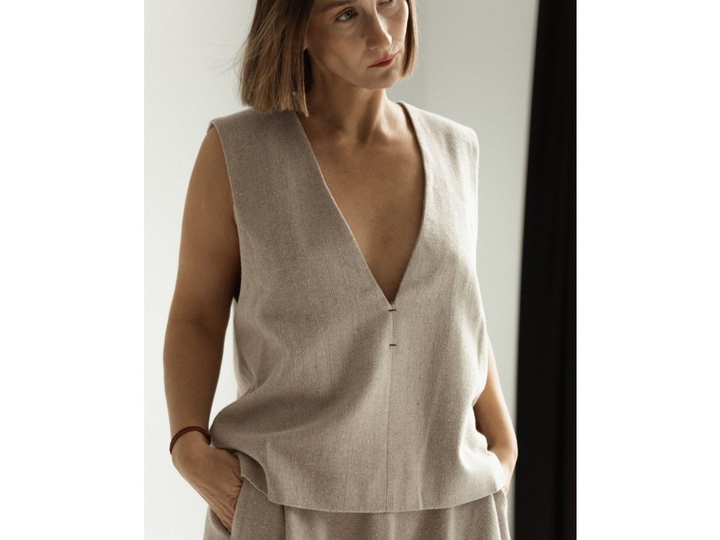 Top s výstrihom do V má čisté línie a minimalistický tvar, vďaka čomu pôsobí elegantne, ale nenútene.