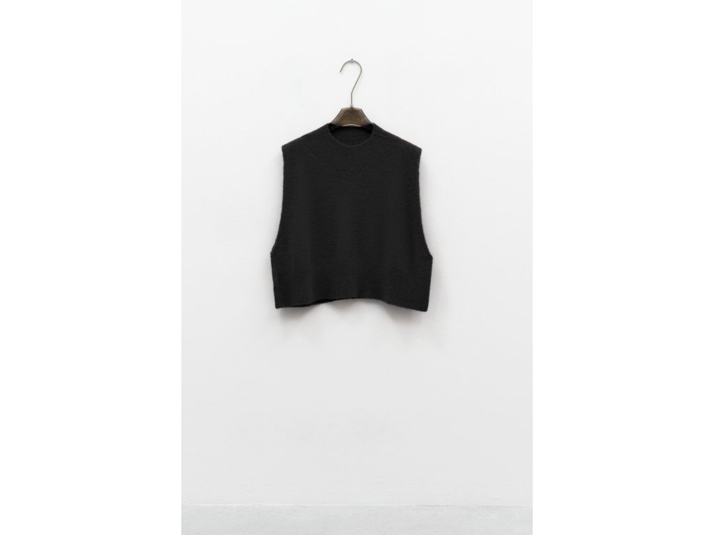Minimalistický sveter bez rukávov s okrúhlym výstrihom, ideálny na vrstvenie počas prechodných období. Vyrobený z mäkkého úpletu, ktorý poskytuje príjemné teplo a pohodlie.