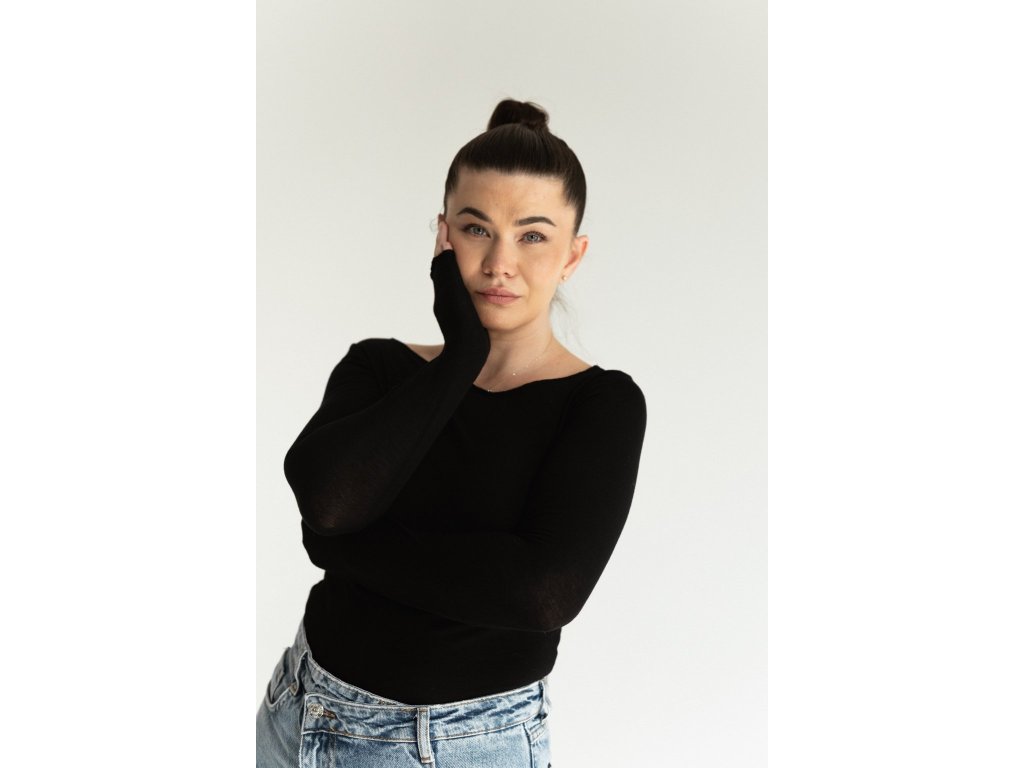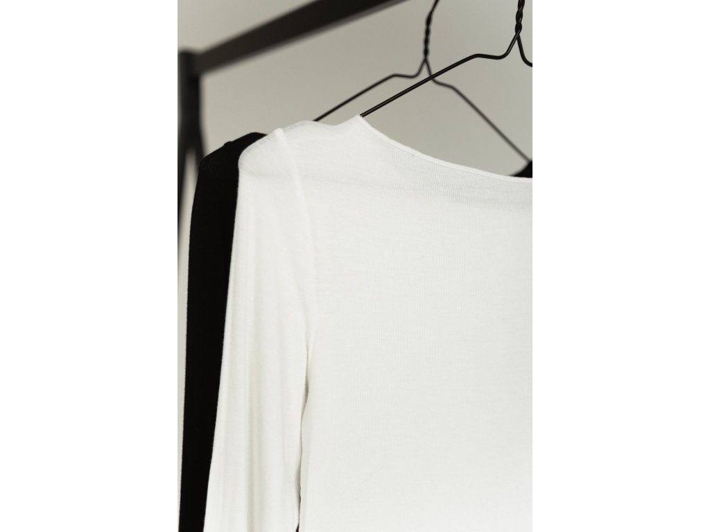 Nepravidelný výstrih pridáva nenútený štýlový akcent, vďaka ktorému pôsobí inak než klasické základné kúsky.