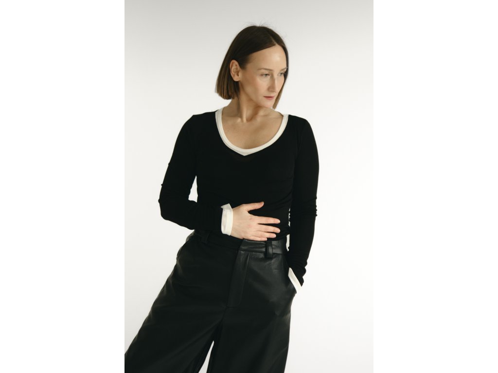 Štýlové tričko s dlhým rukávom vyrobené z príjemnej vlnené zmesi, ktoré spája komfort a nadčasový dizajn.