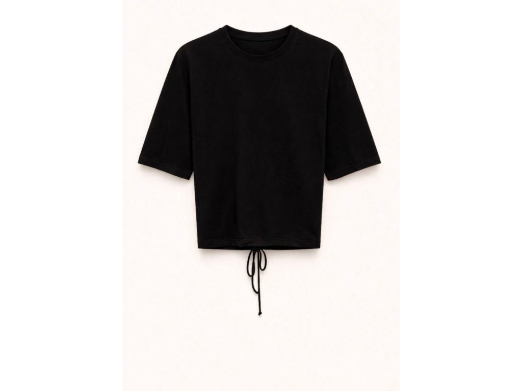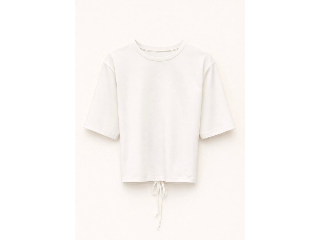 Tričko z príjemnej bavlnenej zmesi s okrúhlym výstrihom a krátkym rukávom je navrhnuté tak, aby sa stalo univerzálnym kúskom šatníka. Jemne vystužené ramená dodávajú siluetu a sebavedomý, štruktúrovaný vzhľad.